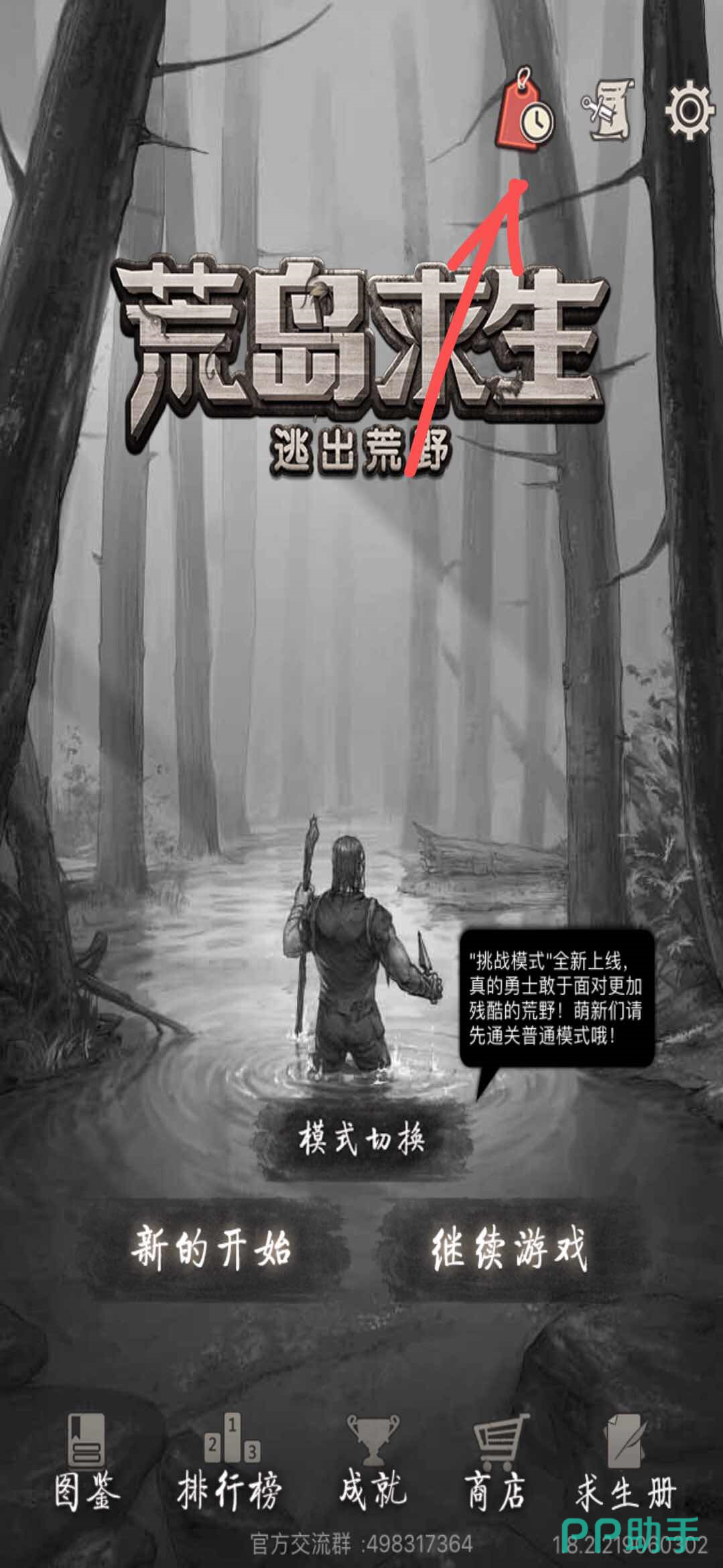 一、在进入游戏的第一个主界面右上角有一个标签形状的图标,点击进入。