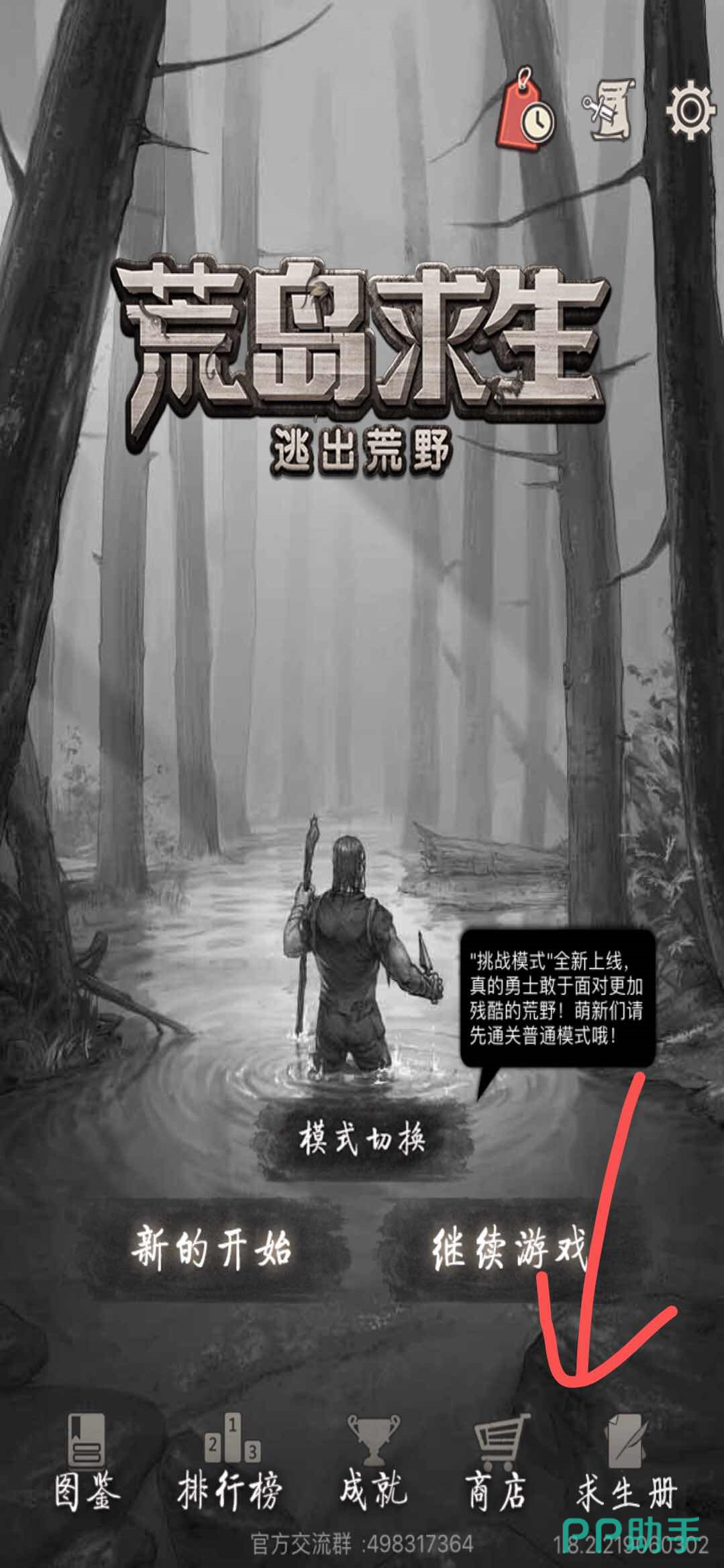 第一步:在我们点开游戏的第一个主界面右下角,可以看到有一个【求生册】图标,点击这个图标进入求生册的详情界面。