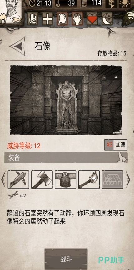 3、当我们被蛇攻击的时候,会直接因为蛇类的攻击而损失一部分生命值。如果生命值数量抵不过攻击数量就会直接阵亡,救治都没有希望了。如果被蛇攻击完之后生命值还有剩下,而内外上却不及时医治,同样也会降低我们的生命值导致角色阵亡。而恢复生命值只能通过睡觉这一种方法。