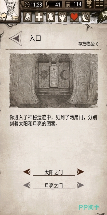 神秘遗迹的入口并不难找,玩家可以通过之前搜集到的线索,在地图上找到大致位置。神秘遗迹的入口石门上有两个图案,一个太阳,一个月亮。玩家可以通过任意一个石门进入神秘遗迹。玩家在到达神秘遗迹后,就会遇到一些机关谜题,破解思路跟推箱子是一样的。
