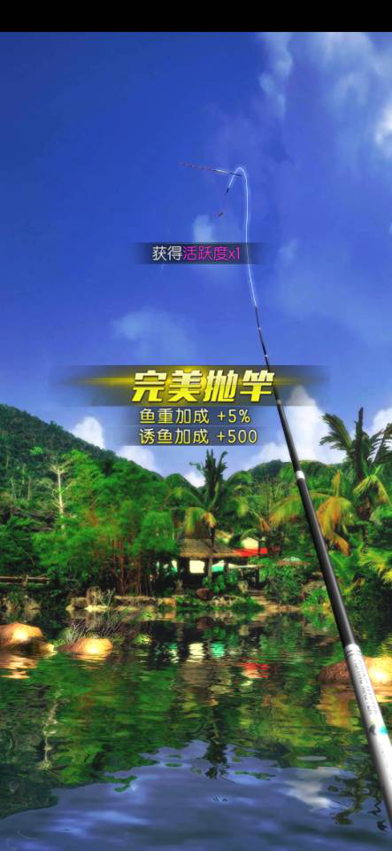 5.我们在找准窍门后甚至可以实现完美抛竿,相应会大幅度提高钓鱼属性,除此之外,等级的提升也会有属性的奖励。
