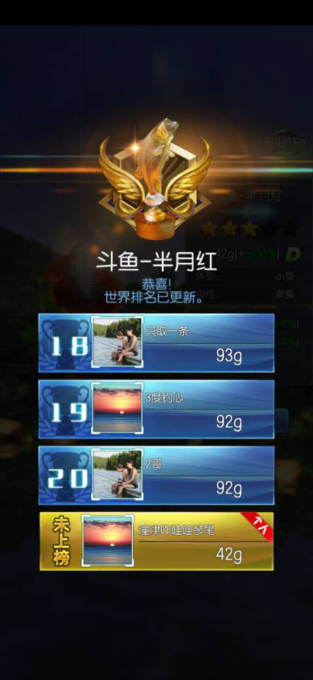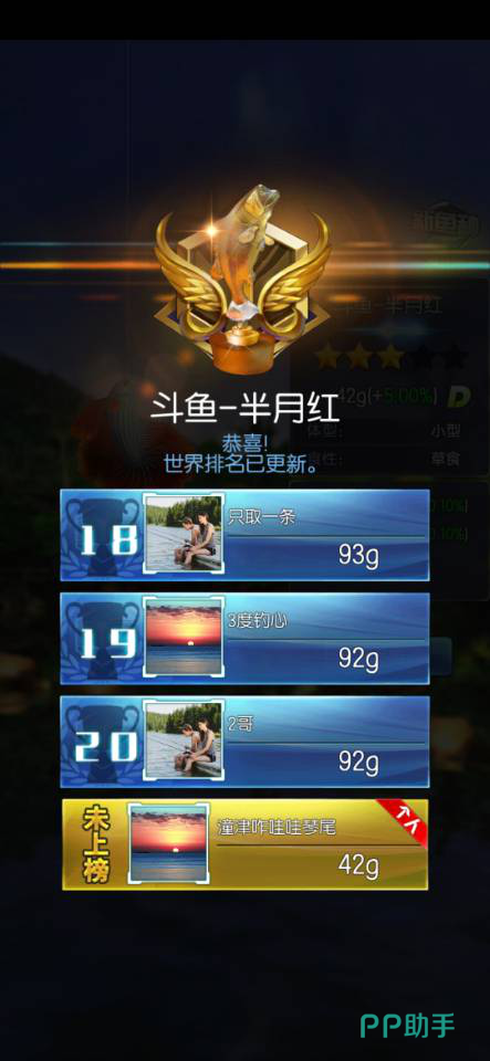 ⑶新增排行榜榜单,如钓力排行、等级排行、鱼重排行等
