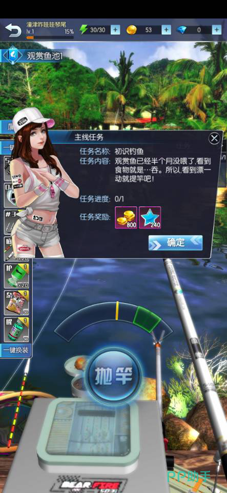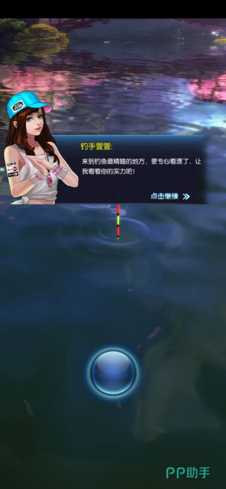 1.首先系统会提醒我们点击抛竿的按钮,不过在抛竿之前我们要观察好高级抛竿框的位置,也就是绿色区域,在指针指向这部分时抓紧点击,然后就会下杆了。