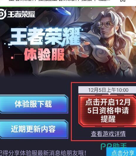 具体流程:进到【王者荣耀体验服】详情页——【点一下流动通告】——【点一下启动十二月五日资历申请办理提示】