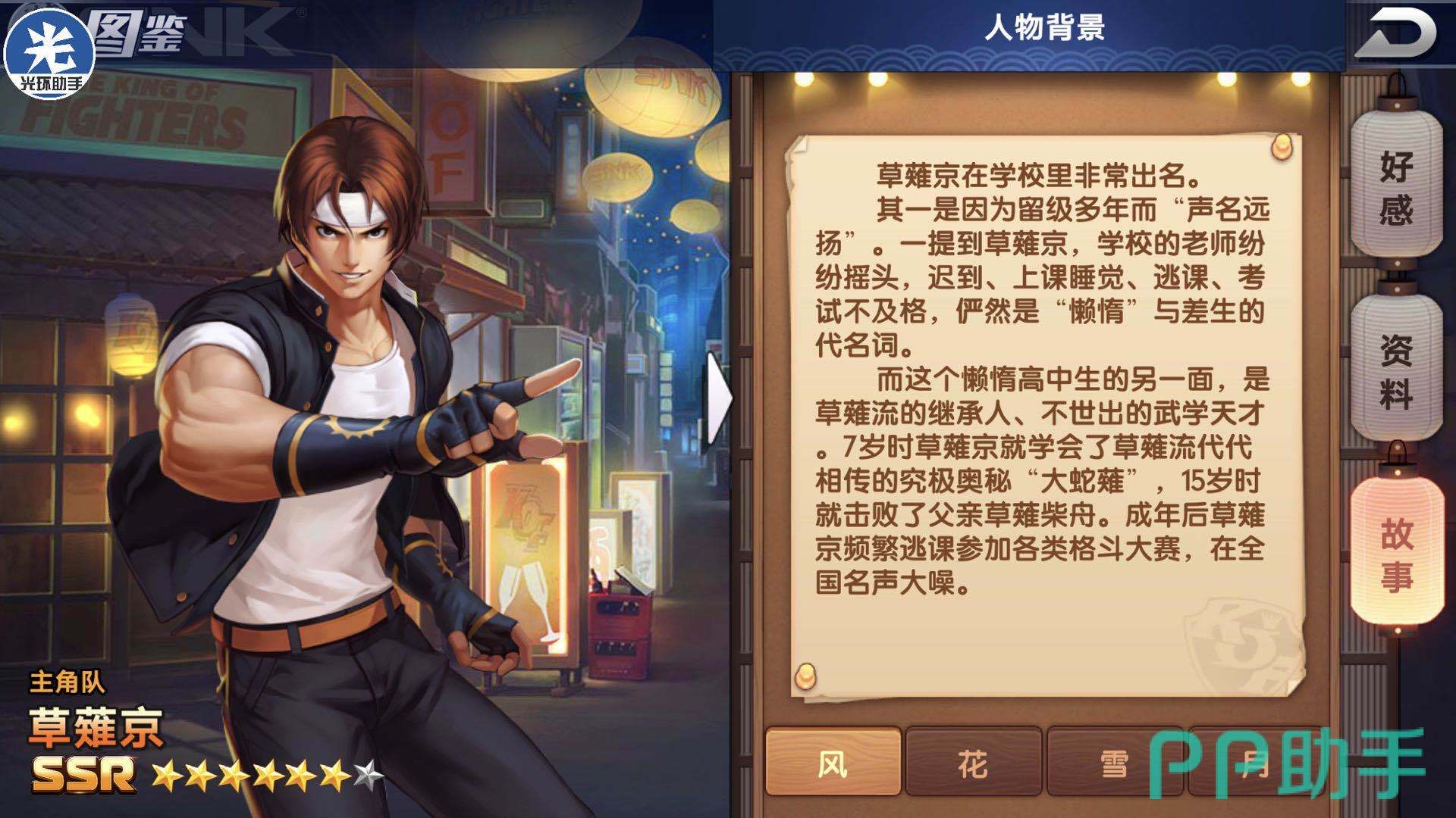 克制效果:因为拳皇本身就是一个漫画,所以每个角色都有自己的人设,比如草雉京的克星就是草稚柴舟,在第一关打草稚京的时候如果阵容搭配中有草稚柴舟可以减少草稚京的攻防。