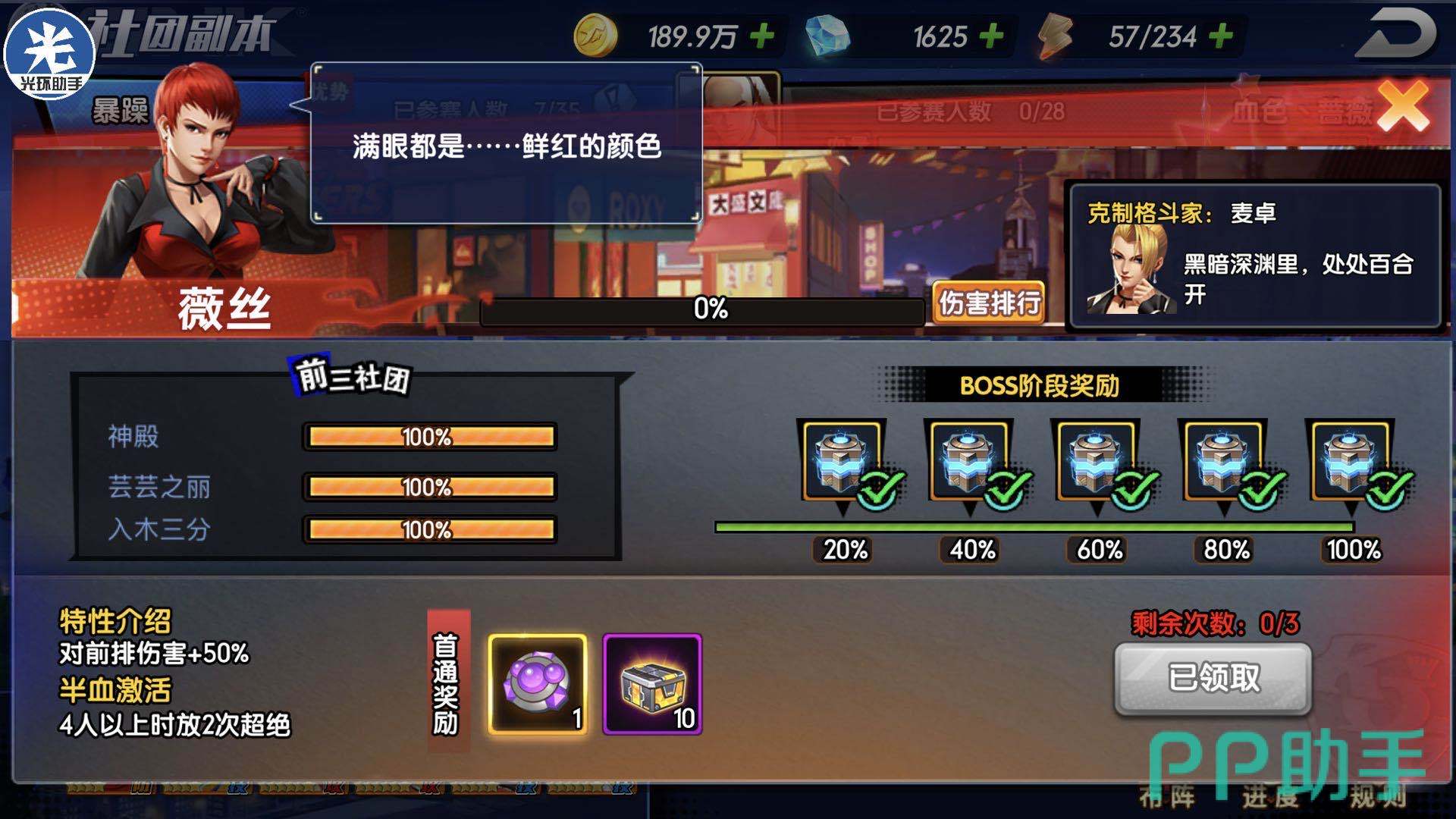 基于这个效果玩家需要培养的角色就非常多了,前期克制效果能凑就凑,后期培养的角色多了,优先培养前面10个关卡的克制角色,因为每周社团副本都会重置,通常前面10关都能通过,后面关卡培养克制角色是用不到的。