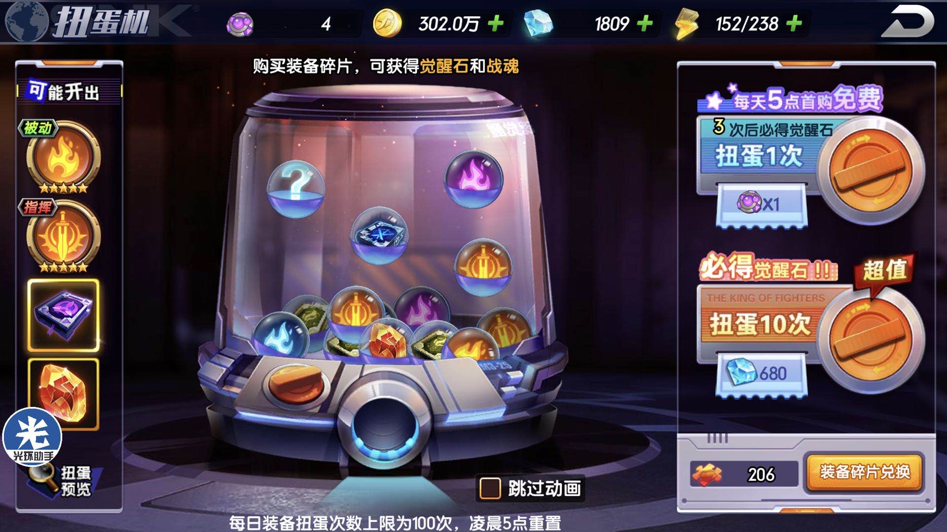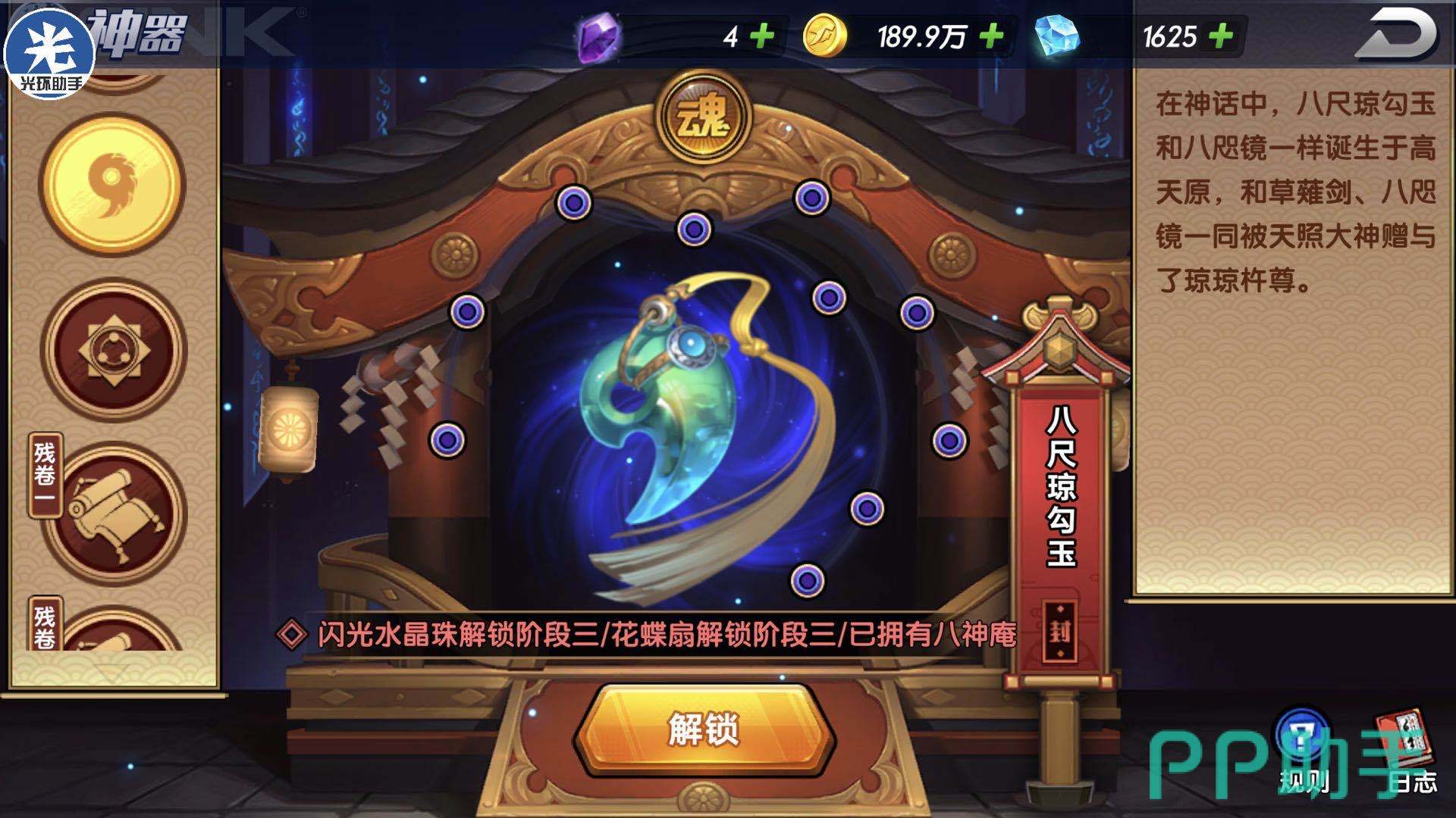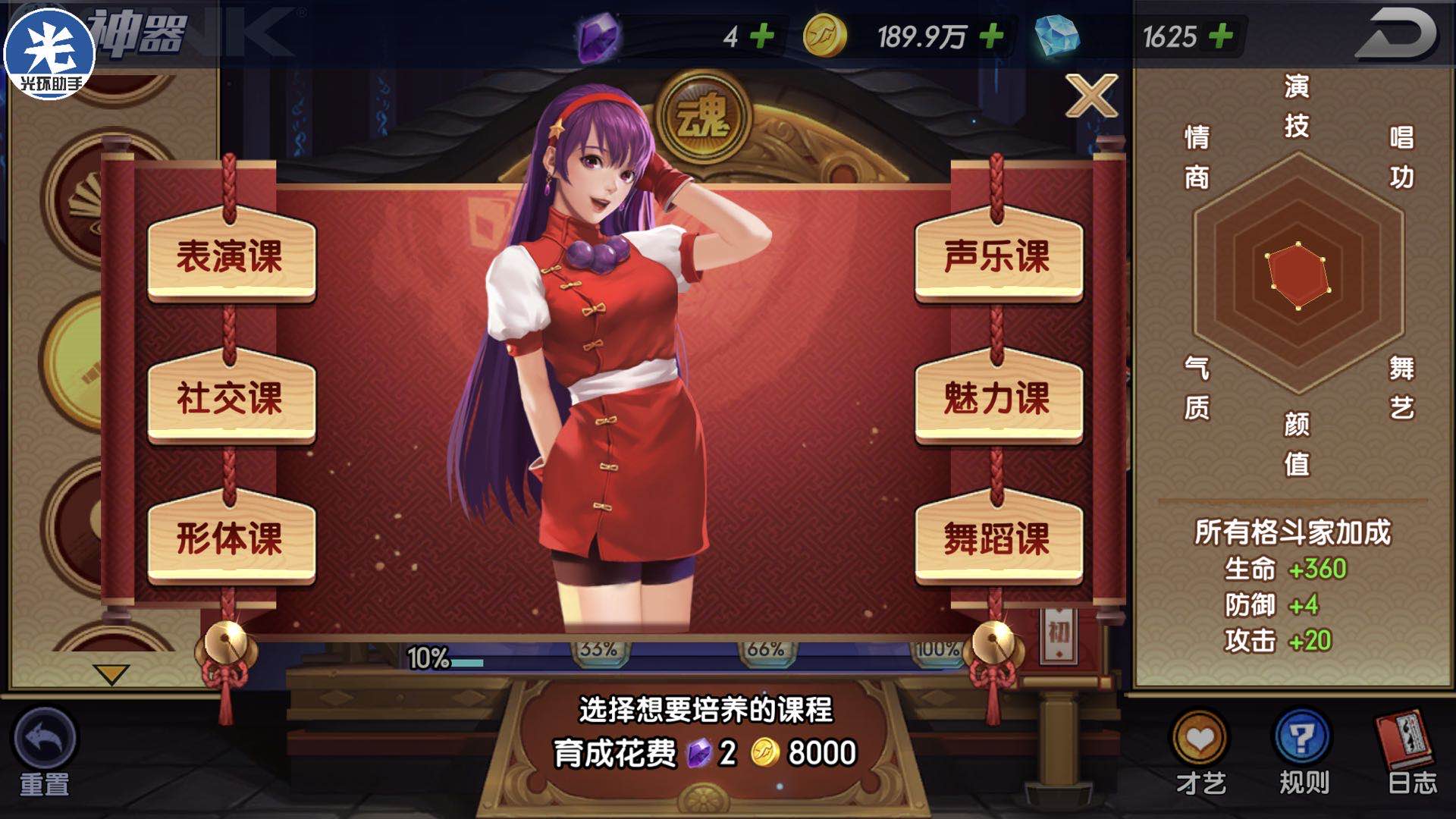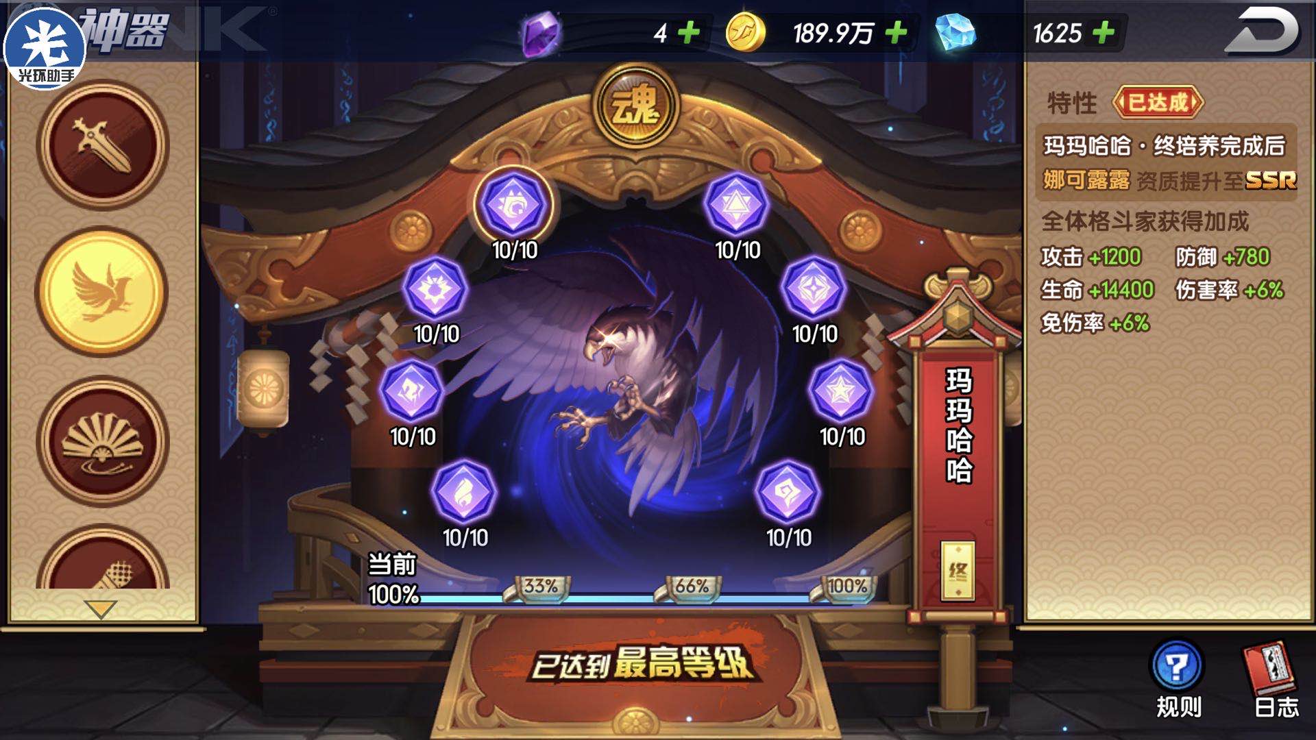 八神的神器一定要升级啊,在社团宝藏稳定获取八神的碎片,加上至尊特权中的碎片礼包,一个月拿60个碎片不是问题,一年也能升到6星了吧。八神的神器加成比其他的角色都要高很多,不过需要前面的神器来解锁该神器。