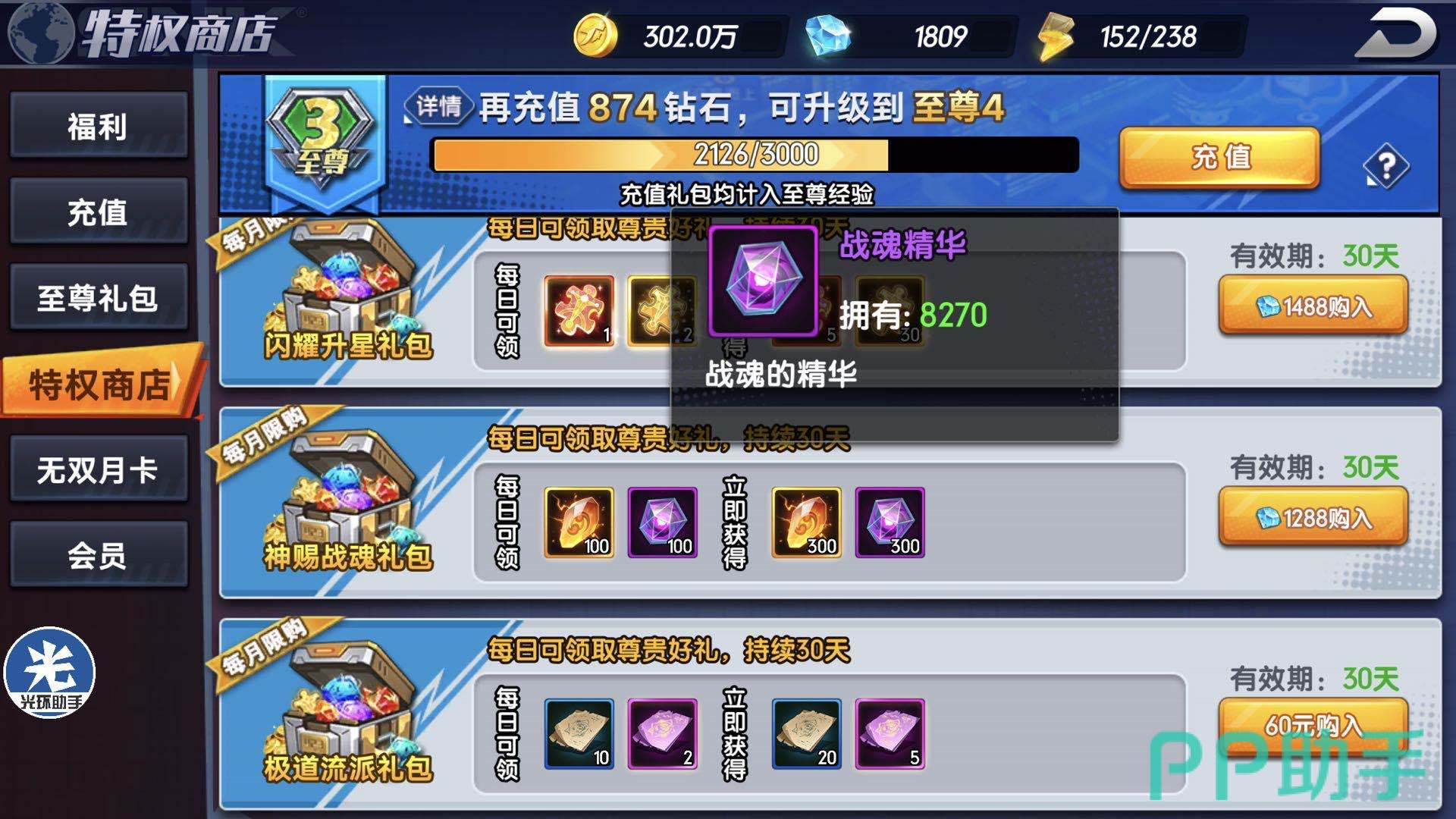 战魂大礼包:每个月用1288钻石来购买,每天获得一定数量的魂晶和战魂精华,这是最划算的啦,属于普通玩家必买礼包之一。