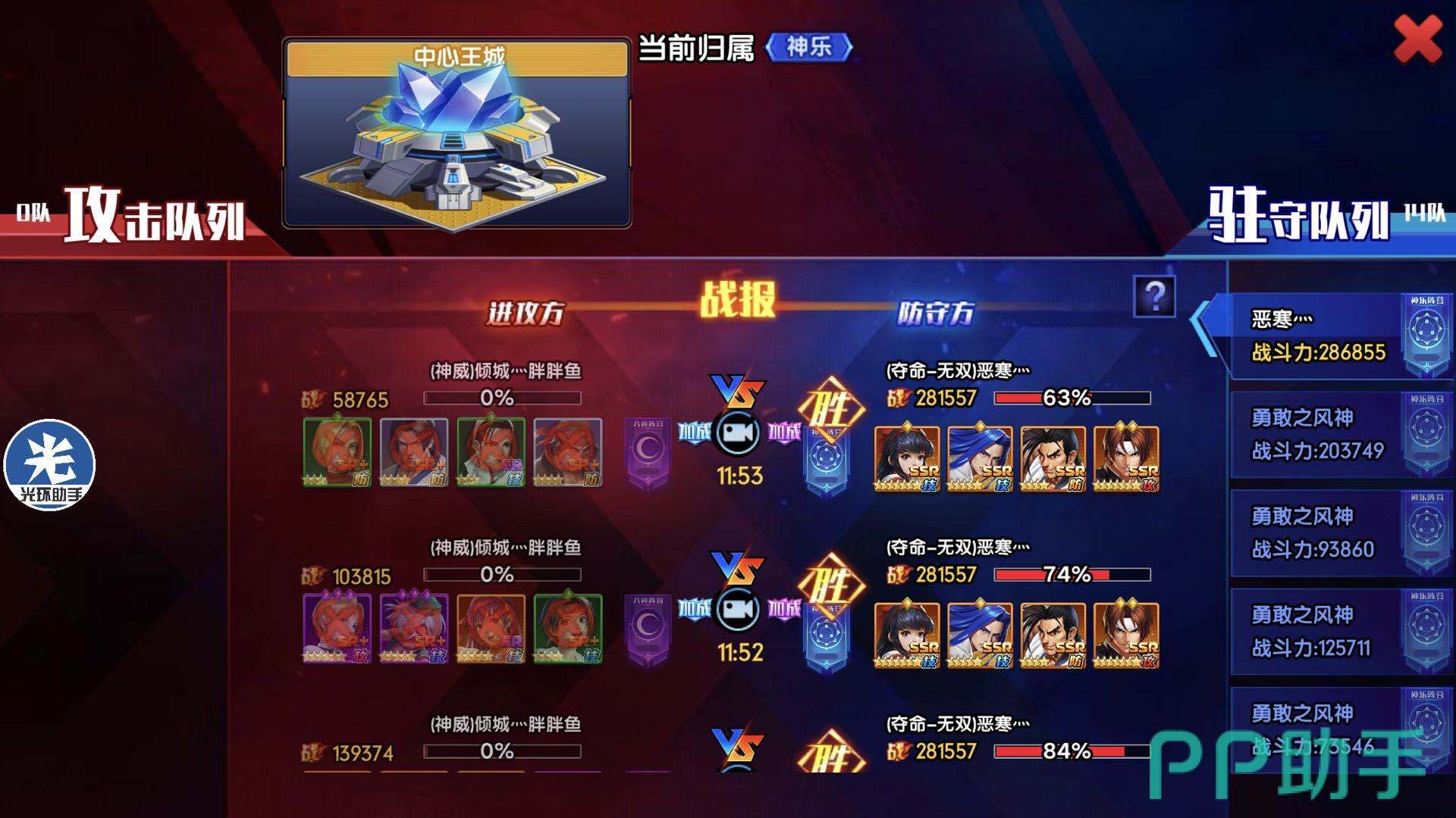 交战规则:车轮战,还好是车轮战,也就是可以不停的派出队伍去打,因为对手的血量不会回复,这样我们再弱小也是能混口饭吃的。当我们的队伍血量没了的时候就会自动回到大本营回血,需要一定的时间,当然玩家也可以使用能量直接回血继续战斗。