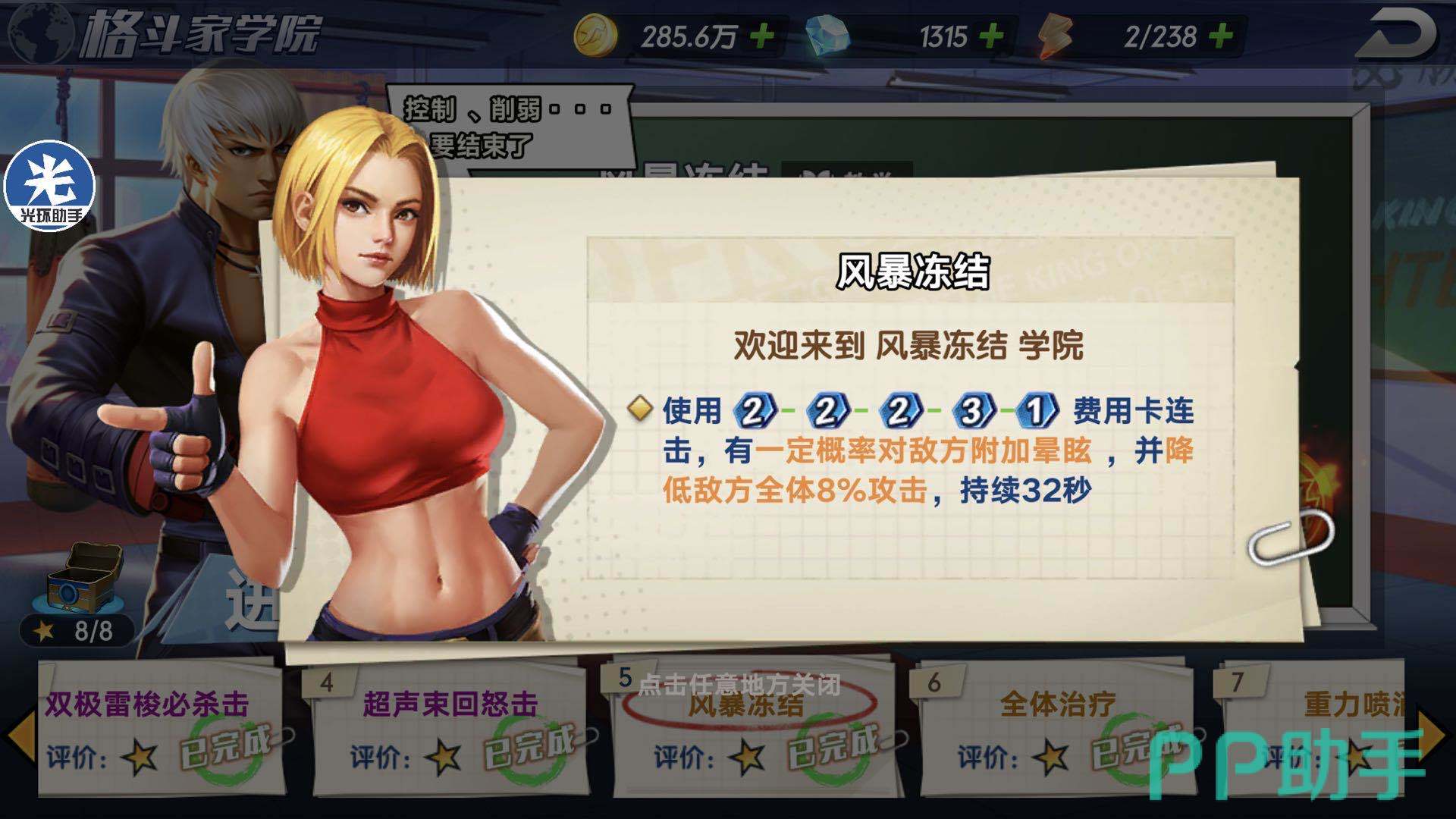 连招推荐:22231风暴冻结,阵容里面有玛丽的话就更要使用这个连招了,眩晕的概率会大幅度提高并且带有减伤效果。11123全体增怒,这个连招一般打出来来可以让6个角色在第一个回合全部使用一次超绝技,杀一个霸王丸还是不难的。