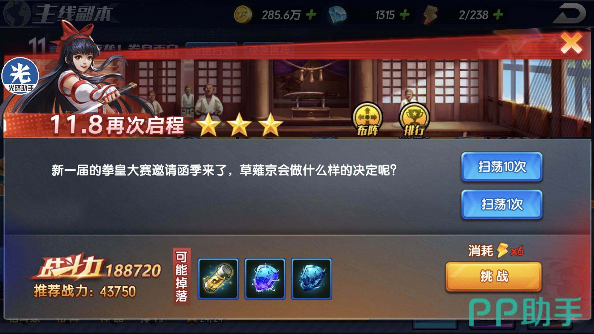 这次小编为玩家们带来拳魂觉醒主线11-8怎么过的详细攻略,打主线、精英等星星关卡,分为满星和不满星通关,通常想要满星通关必须是战斗力等于或者高于关卡推荐战斗力,除非玩家手里的角色特别强势,比如有多个天生SSR卡牌。如果战斗力低于推荐战力可以通关,但是很难满星,下面一起看看主线11-8怎么过吧。