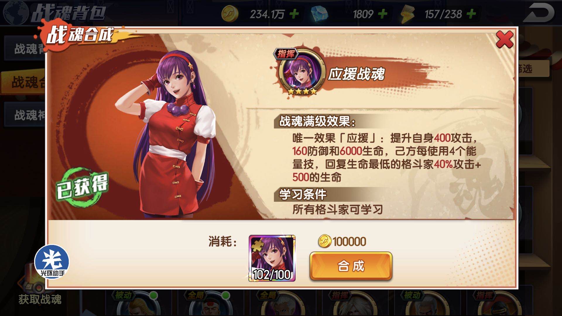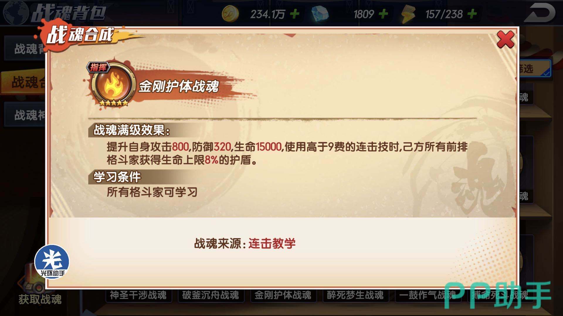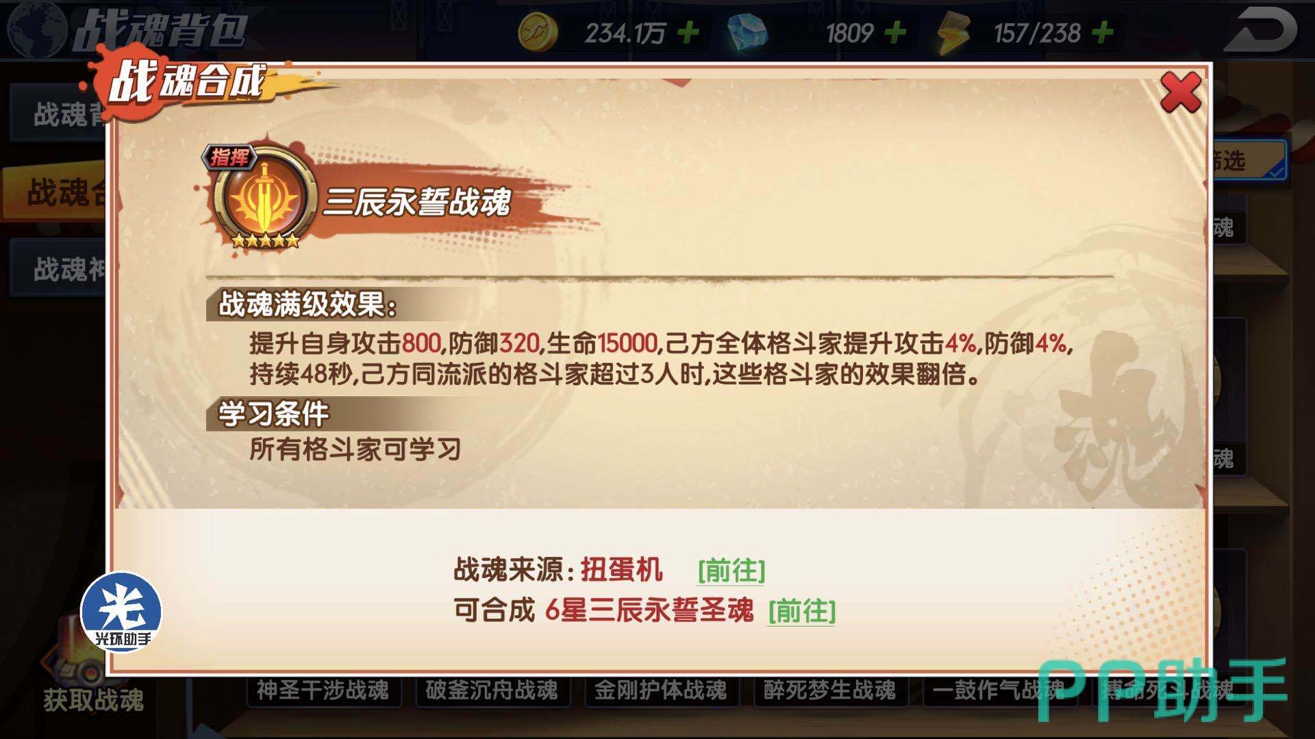 1.使用碎片直接合成,这个小编之前也说过了,角色的碎片越多出现的战魂就越高级,不过也跟角色本身有的战魂有关,比如有些R级角色碎片再多也没有专属战魂。