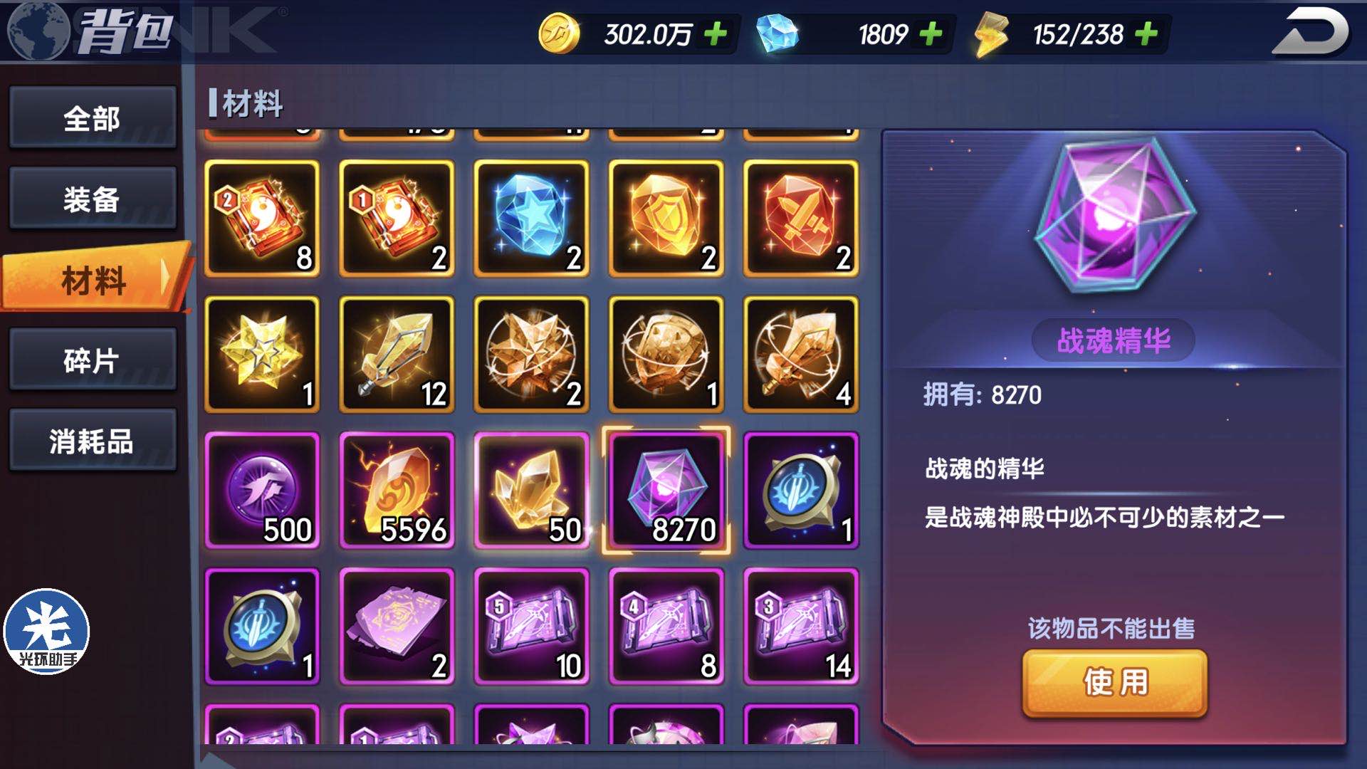 战魂精华的作用:在合成5星及以上的战魂会用到战魂精华,一般是1000个左右,越高级的战魂耗费的战魂精华就越多,总之这个东西是一定不会缺的。当我们升级到7星战魂的时候用到的就不是战魂精华了,而是战魂核心,这个道具普通玩家是没有任何获取方法的。
