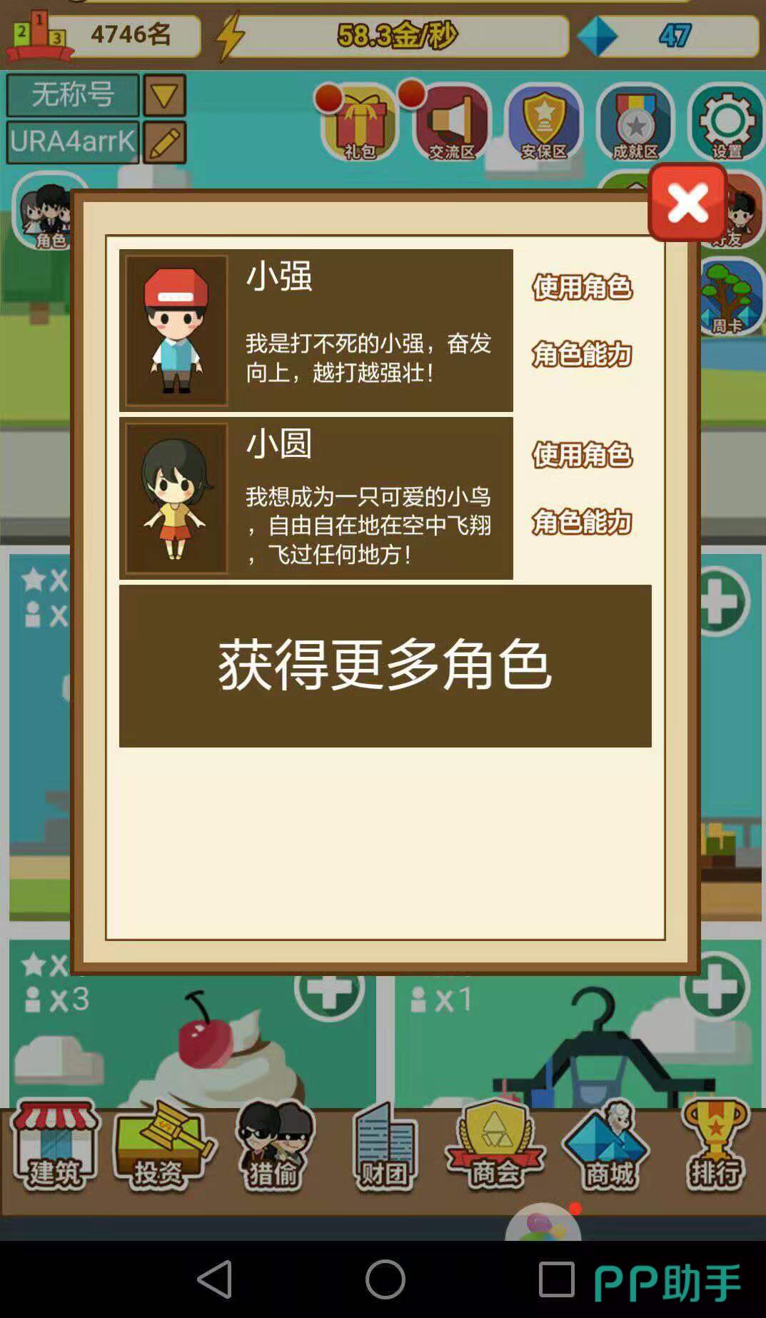 在游戏下方里,我们可以看到有“建筑”、“投资”、“猎偷”和“商会”等,无论是建造商铺还是投资,加入商会,都需要花费金币,或者提高财富速度,对于新手来说,提高财富速度需要在经营中不断升级,因此,只有消耗金币。