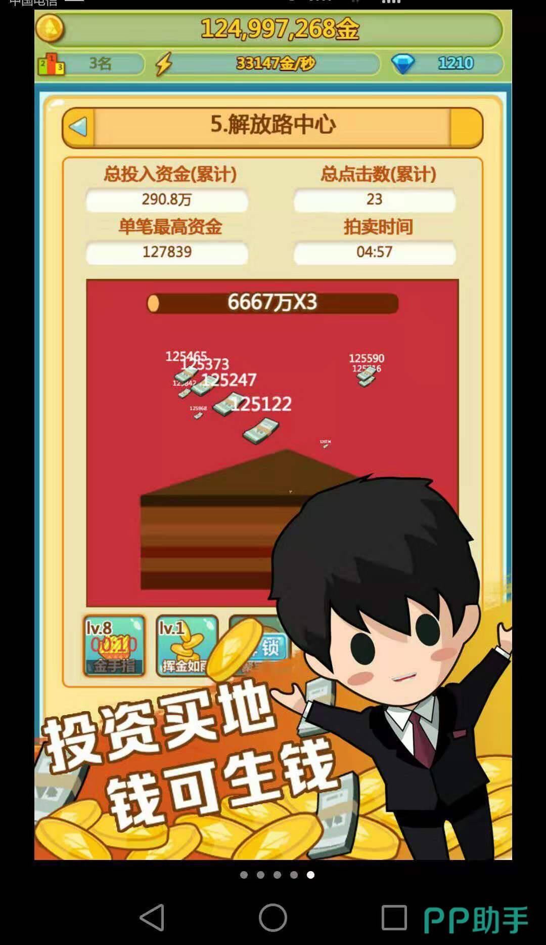 要获得金币除了购买外,我们还可以点击自己的角色,就能获得大量的金币。拥有金币后,等于我们有自己的资金了,就可以去建造自己的店面了。小编试了下,用了15金币,就开了一个烧烤店,雇佣了2个店员,接着就等着我们的员工给我们看店赚钱就行了。