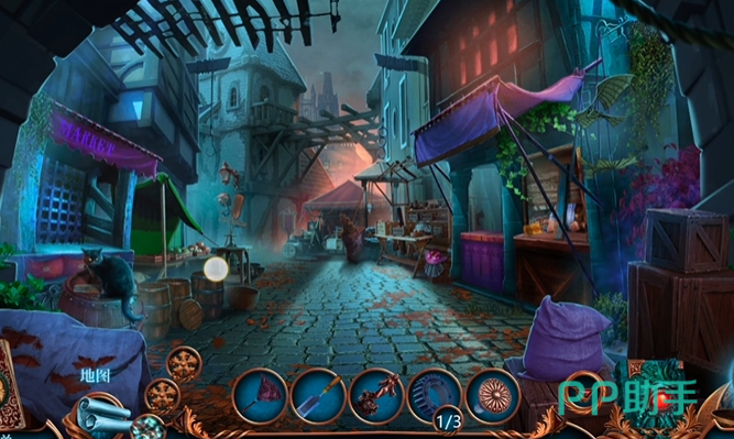 1、帮助阿蒙,在中下方圆桌子里得到一个棕色大包,中上方的场景可以拿到一面镜子和一对螺柱耳环,把所有的东西都放在一起就能得到一个护身符。然后去右侧的留声机那里拿到一本书,利用磁铁拿到一把钳子和两张护身符,在中间的木柜里用护身符获得一把剑,最后拿到男人面前使用,就算完成了这个任务。