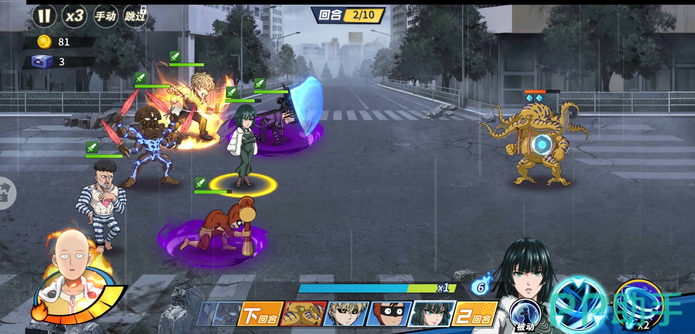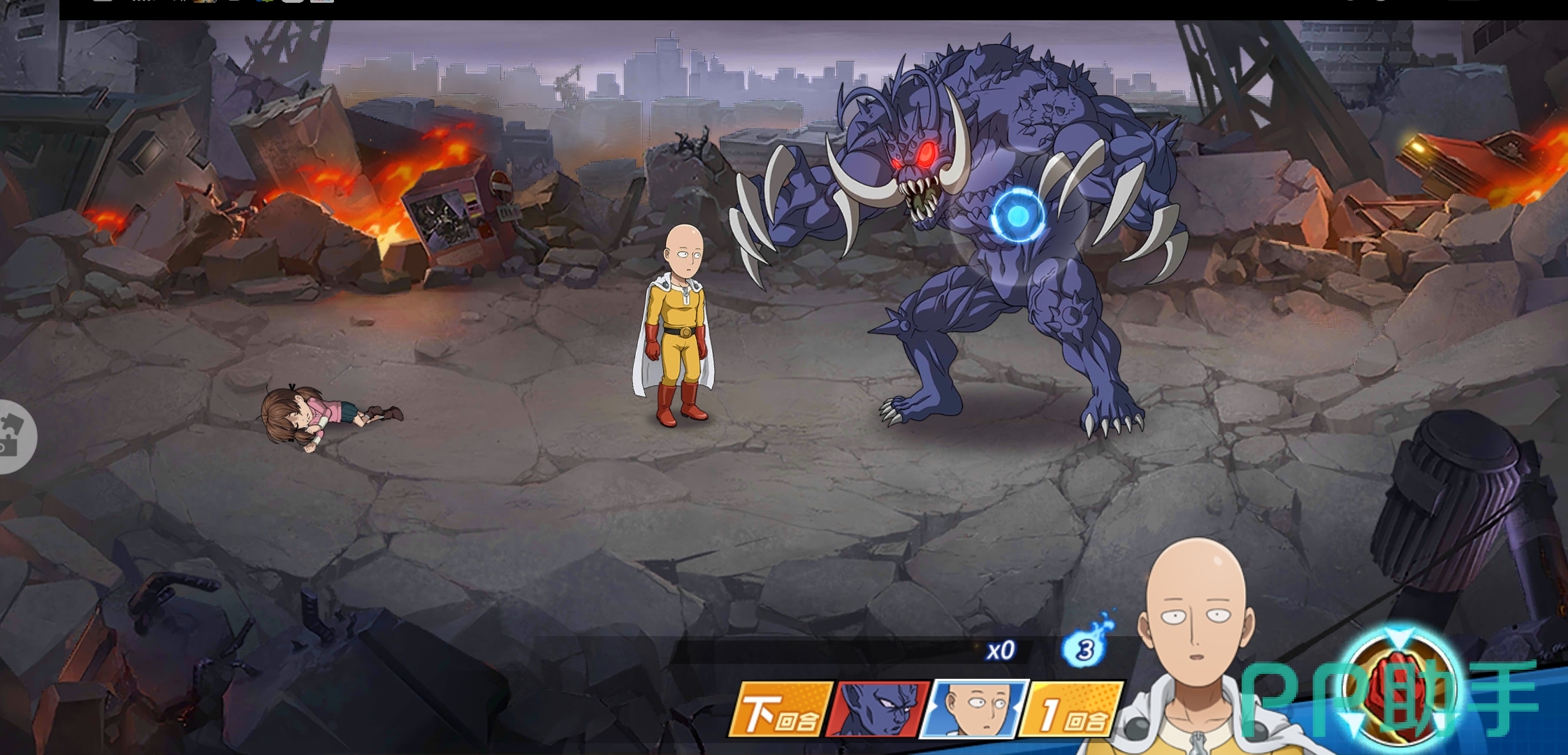 获得琦玉以后的玩家需要在战斗中积攒琦玉怒气条,一般在战斗的第二回合就能积攒好琦玉能量条,这时玩家点击琦玉图表,选择一名敌人,就可以秒杀所选敌对阵营的对象。