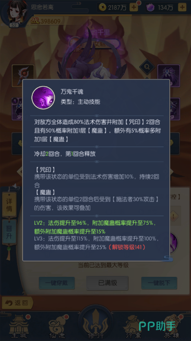 2、输出—女魃:可与刑天相辅相成,魔蛊状态下的敌人会大幅提升女魃的输出能力,造成高额的法术爆发伤害。
