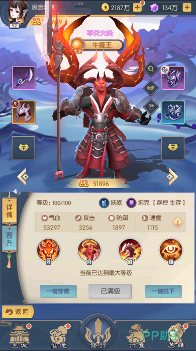 例如一个回合的战斗中,玩家们使用牛魔王和泰山王作为队伍的前排。这两名角色就可以对敌人的前排阵容起到压制的效果。牛魔王凭借出色的嘲讽效果,能够直接锁定敌人的输出手段。敌人的输出手段一旦被限制,就失去了赢得胜利的机会。此时利用泰山王可以攻击敌人全体前排的特性,即可解决敌人。