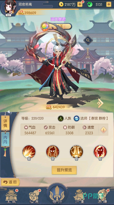 2)主建筑为“洞府”建筑,洞府建筑的级别确定了其它房子的级别限制;与此同时洞府房子的级别确定了游戏玩家的符兵数目存储限制。