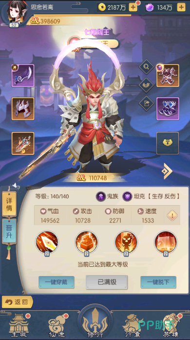 孟婆+聂小倩+黑白无常+泰山王+地藏王;鬼系的输出阵容,受玩家喜欢的阵容组合,可以搭配好极强的肉坦,还有超强的持续输出,走高输出路线。法师、战士和坦克,极强的协助组合,持续的输出增益,还有不错的负面效果清除,能够进行持续消耗,对敌人造成更高的输出伤害。“魂伤”效果附加,累加额外的输出伤害,让敌人持续的掉血,之后就可以搭配好前排防御的黑白无常和泰山王,可以进行持续的输出,对敌人造成大量的抑制效果,累加额外的输出和极强的输出伤害。