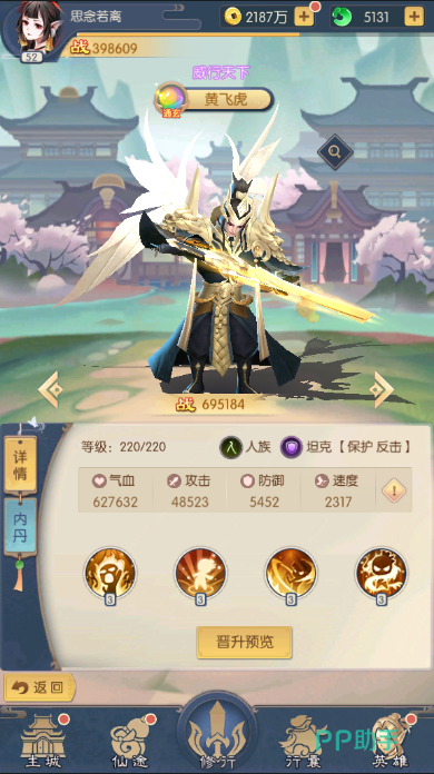 2、天朗之身:被动技能,气血提升20%,攻击提升10%