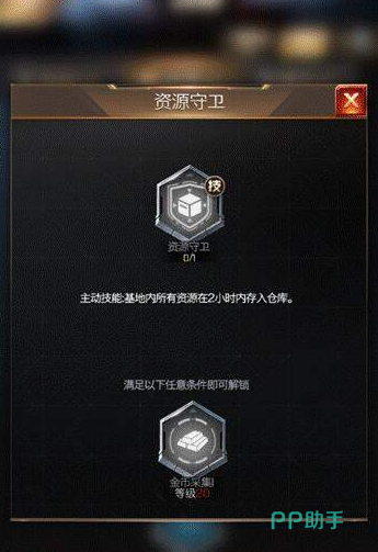因为这是一个对战游戏,因此总是会有敌人来抢夺基地财产,我们需要点亮资源守卫技能,保证自己辛苦获得的财产不被抢走盗取。