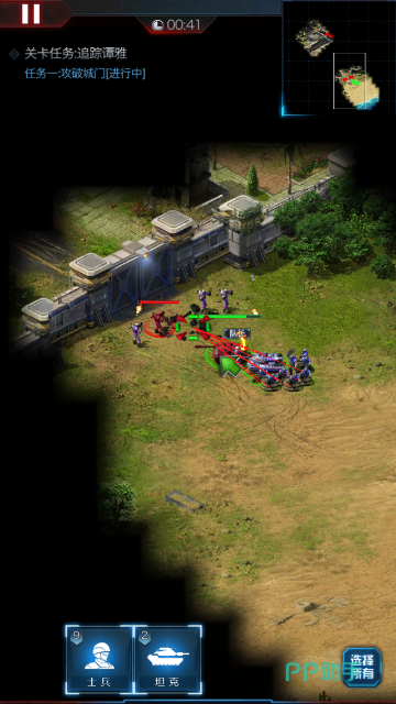 把防守的全部部队消灭,就可以点击城门,我方救援小队,就会集火城门,然后,完成第一个任务,才能继续前行。