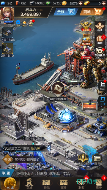 2、在红警OL里,不需要玩家可以去充值来提高战力,在前期升级建筑以及训练军队所需要的时间是非常少的,在短时间里升级建筑是可以免费升级的。