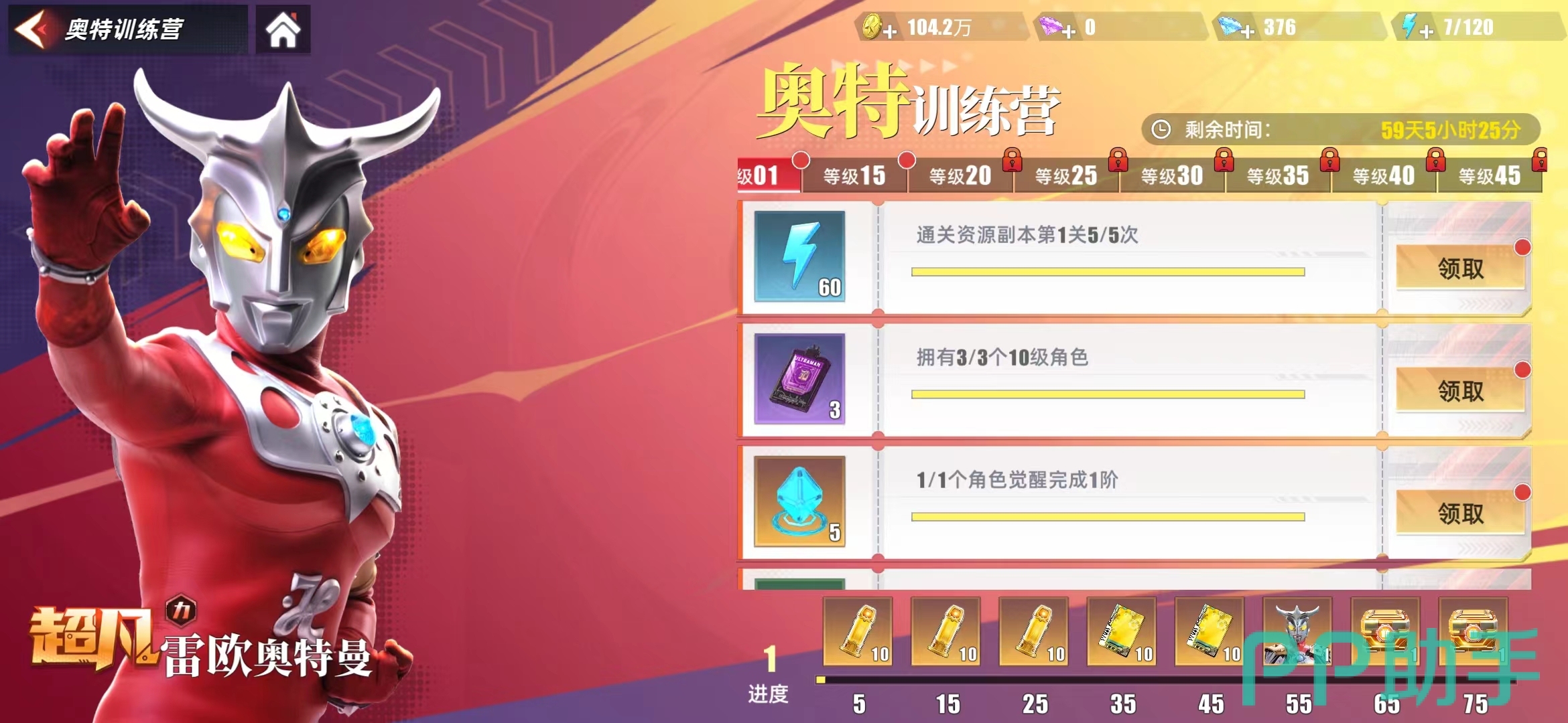 大量的高级召唤票和20本经验书以及一个超凡【雷欧奥特曼】角色奖励,奖励还是很丰富的,而且这个活动十分的良心,小伙伴们不用花费人民币去进行解锁,只需要通过不断的升级,挑战副本就可以成功的解锁,大家快去试试吧!