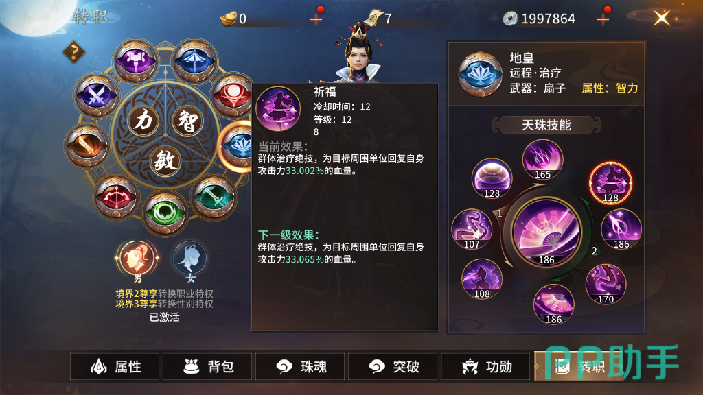 其中有几个属性是比较好的,例如天皇对应的生命加成,皇帝对应的攻击加成,时皇对应的防御加成。这3个属性是所有的职业都需要的属性。所以建议先点这三个主属性。