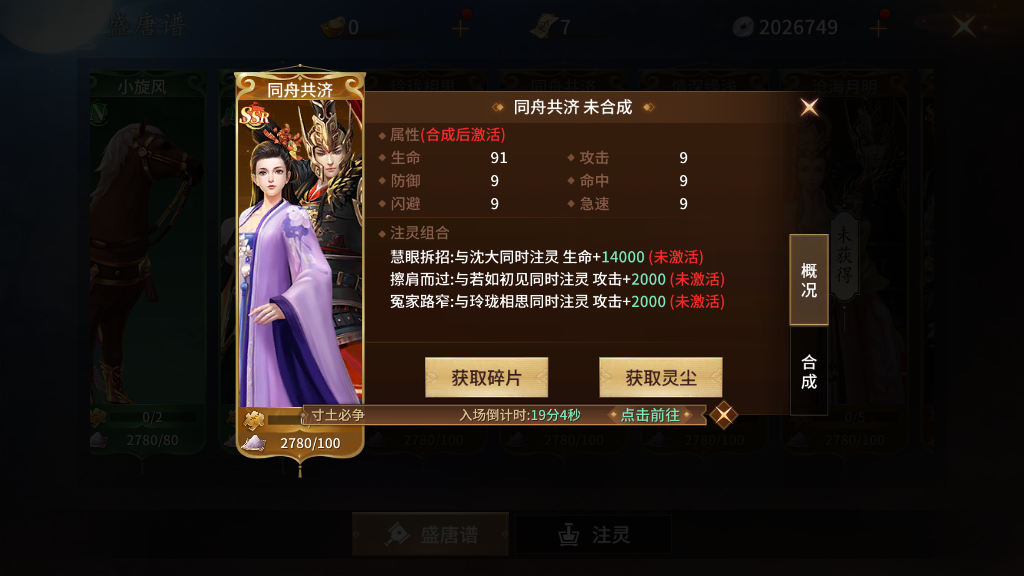 同舟共济最大的一个功能就是提供了急速,合成这个盛唐谱之后可以额外的提供9点急速,后期会提高的更多,对于法师来说急速是一个十分重要的副属性,注灵的效果与玲珑相思类似。