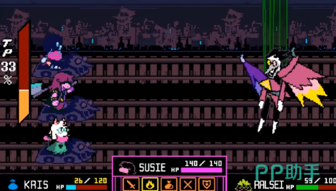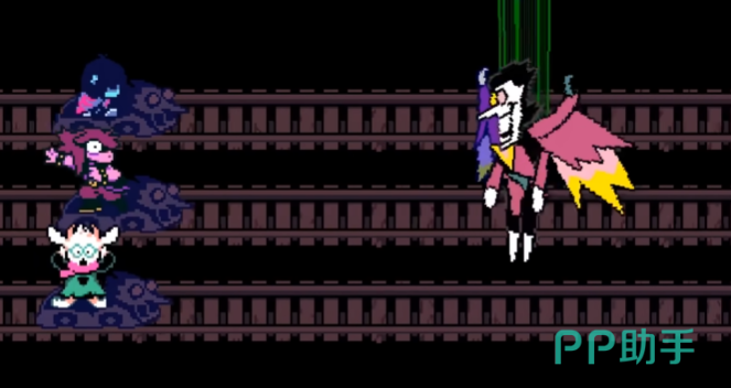 途中还会误认叛军乐团Sweet Cap'n Cakes为敌引发舞蹈对决需妥善处理,过山车决战Berdly环节Queen派出Noelle和Berdly驾驶改装过的过山车登场对方自夸智力超群实际弱点明显,持续撞击侧面可触发引擎过载使其释放智慧烟雾加速暴露破绽最终一击必杀。