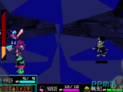离开城堡小镇后,游戏进入平原追击阶段,兰瑟的阻拦成为此阶段的第一个挑战,设置的谜题围绕踩格子展开,玩家需要在规定时间内踩住发光的格子才能继续前进,死亡迷宫区域中,沿右侧墙壁直行是高效推进的策略,可跳过非必要战斗节省探索时间,解开谜题后,兰瑟派出三只Hathy与玩家战斗,战胜它们后继续前行会遇到苏西,此时有一扇门需要三人合力才能打开,苏西也由此正式加入队伍,团队的战斗与探索能力得到增强。