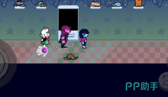 第三章一开始,玩家在沙发上醒来,身边仅有苏西和克里斯相伴,从当前场景判断他们身处暗世界之中,此刻应先在附近仔细探查一番,往右边走便能发现一个存档点,及时存档可确保游戏进度的安全,存档完成后继续前行,途中会遇到一些形似史莱姆却正在酣睡的生物,下行过程中会触发精彩剧情,邂逅利艾尔斯,一番对话过后,她欣然加入队伍,前方的史莱姆还可进行趣味互动。