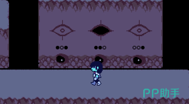 故事一开始大家会看到主角Kris在陌生地点苏醒的那一刻,发现搭档Susie莫名失踪,当穿越那片阴森黑暗的区域时,突如其来的浮肿斑点状实体带着黑色液体喷涌而出的攻击让人措手不及,这些怪异生物会向玩家喷射子弹,此时很快便迎来了第一个真正的敌人,这个有着红色轮廓的危险存在会连续发射三发子弹,对付它的诀窍在于紧贴墙壁利用环境掩护来规避其攻击模式,紧接着面临的抉择也至关重要,眼之谜题要求按照特定顺序左→右→中按下按钮使三只眼睛全部变黑才能解锁。