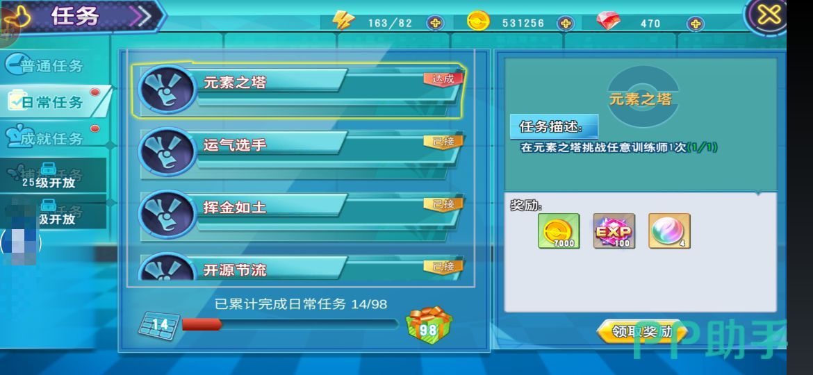 这个就比较适合平民玩家,个体值洗炼达到一次,在世界联盟中挑战任意一个对手、使用扭蛋机扭蛋达到5次、在竞技场中挑战对手2次、成功挑战每日boss2次、捕捉任意精灵5只、在元素挑战训练师一次,完成这些任务都可以获得数量不等的mega进化石。