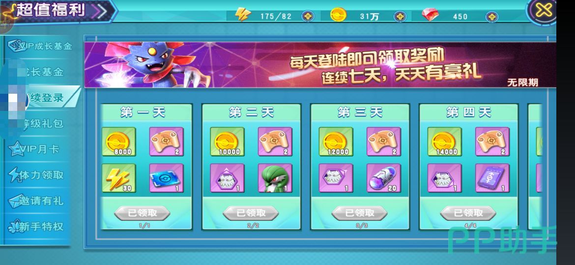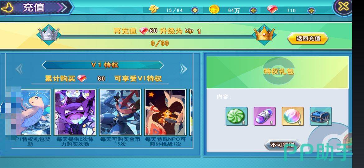 玩家们充值60个水晶就可以成为vip,每天可以领取特权礼包,礼包中包含4个mega进化石。
