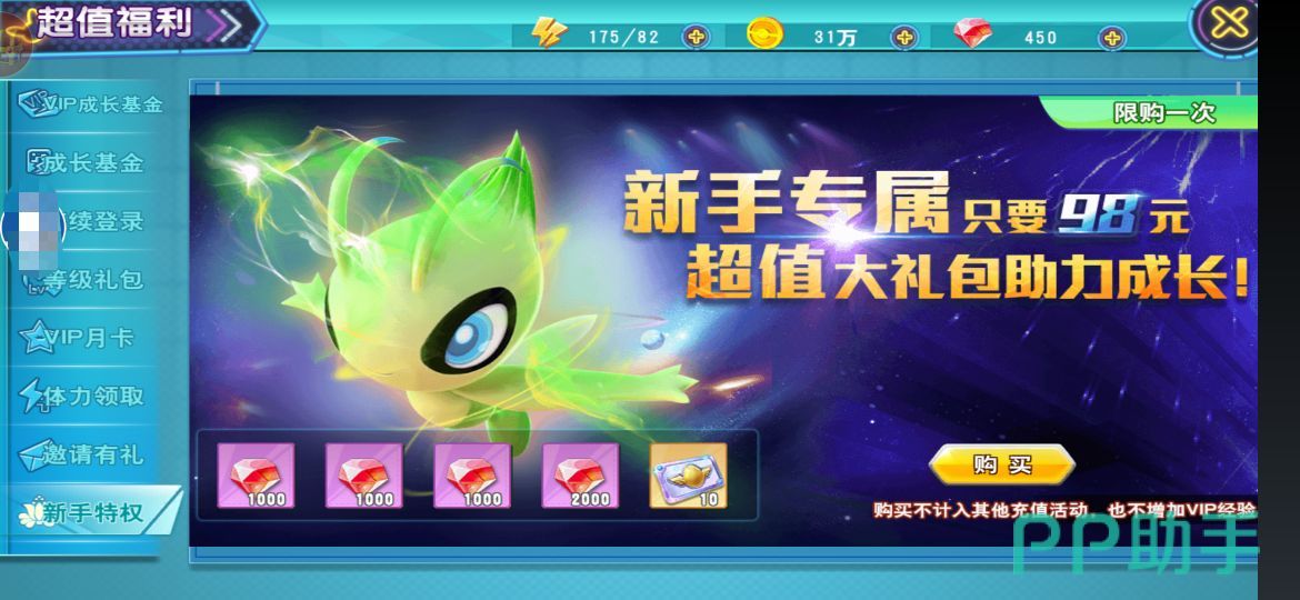 新手购买新手礼包,可以领取6000钻石。