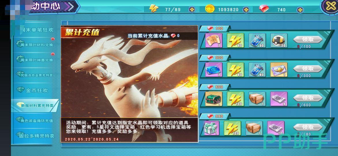 (3)累计充值:累计充值100个水晶,即可获得2个遇怪券、30个电池以及高级捕捉球。