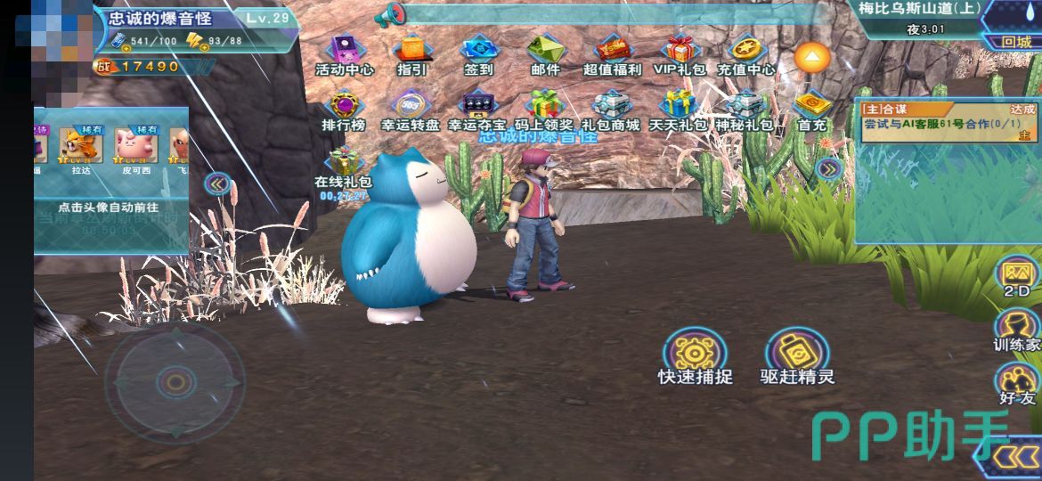 自动捕捉技巧: 时间有限的玩家可选择在北部地图的草丛附近开启“自动捕捉”功能。 但请务必确保体力值超过1000点,以延长自动捕捉的持续时间。