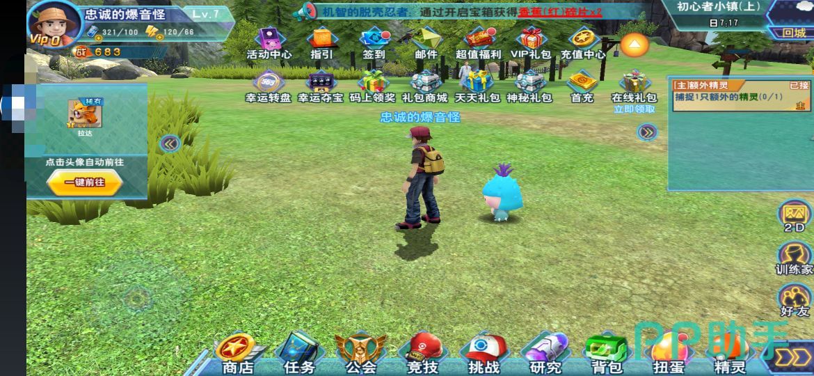 (1)礼包商城:充值一元即可获得10个黄金喷雾、10个快速捕捉券、扭蛋券、精灵球。
