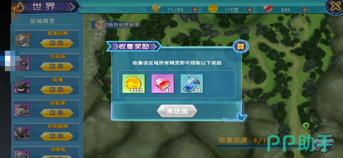 进入到对应的区域以后,点击右上角该区域的昵称,就会切换到世界地图,点击自己想要捕捉的精灵头像,系统就会自动让训练师前往该区域。