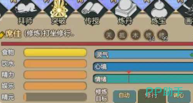 2.选择调心:如果角色的心情处于低谷,不妨选择“调心”选项。让角色进行一些娱乐活动,不仅可以增加心境值,还能够少量获得一些参悟,促进修行。
