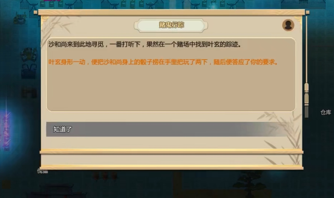 搜魂事件:需要你先触发叶玄的秘闻奇遇。你会在极天宫遇到叶玄,这小子好赌他会向你提出一个赌局,难度会根据你的运气和RP而变化。如果有足够的运气或者其他技巧,可以尝试赢得赌局,以获得御风子游记一的位置。就是说如果你赢了,他会告诉你御风子游记一的所在地,如果你输了,请直接sl。