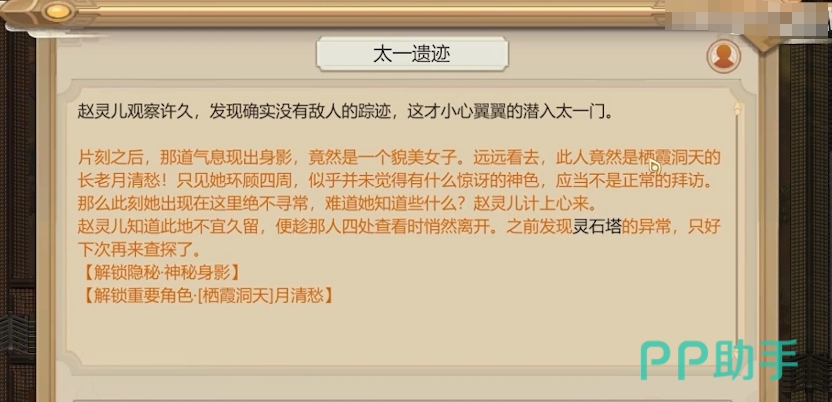 作为太一门的弟子,参加了太一门的筑基大典,却意外地触发了太一门的禁制,导致太一门被灭,你也被卷入了异界。你需要在异界中寻找出路,同时也会遇到一些有趣的事件和人物,比如神秘的月情愁,奇怪的石刻,还有一些隐藏的秘密。然后就是重返太一:回到了太一门的遗址,发现太一门已灭,师兄弟也不知所踪。在这里找到一些线索,了解太一门的灭门原因。