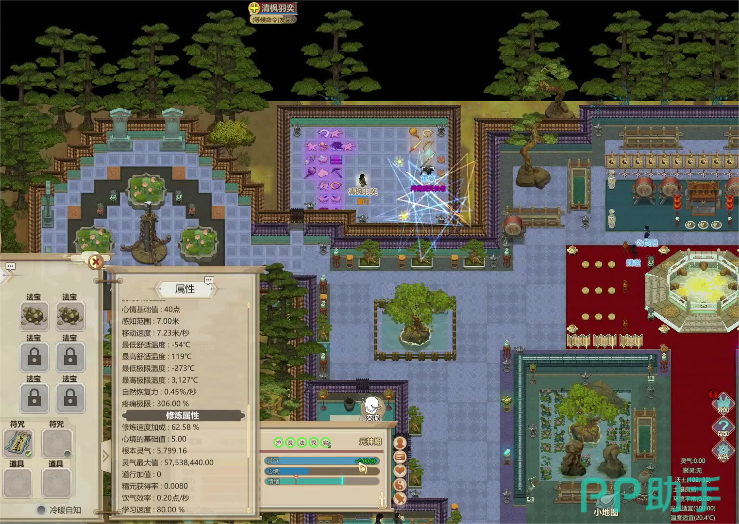 3.利用门派设施:若门派中设有琴、棋盘等娱乐设施,角色会主动前往进行娱乐。这些活动不仅能提高心境,还可能创作出曲谱、棋谱等道具。这些物品吸收灵气效率高,适合留作法宝坯子或者用于熔炼。