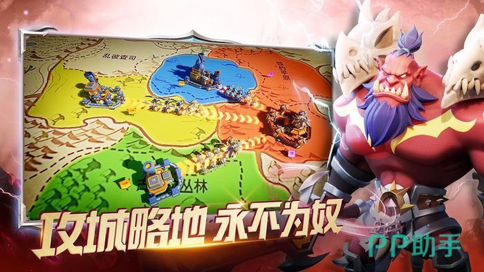 这款游戏的玩法为slg类型的策略手游,不过游戏当中玩家们将会在一个庞大的地图当中,自己确定发展的地点。游戏内不同的位置具备的资源不一样,丰富的资源附近不仅会有一些中立的敌人,而且也会有其他的玩家们过来,此时就难免需要战斗了。