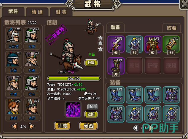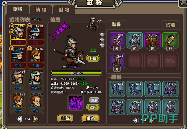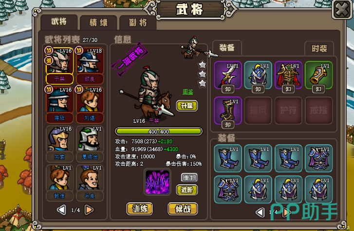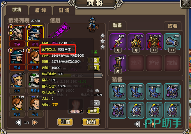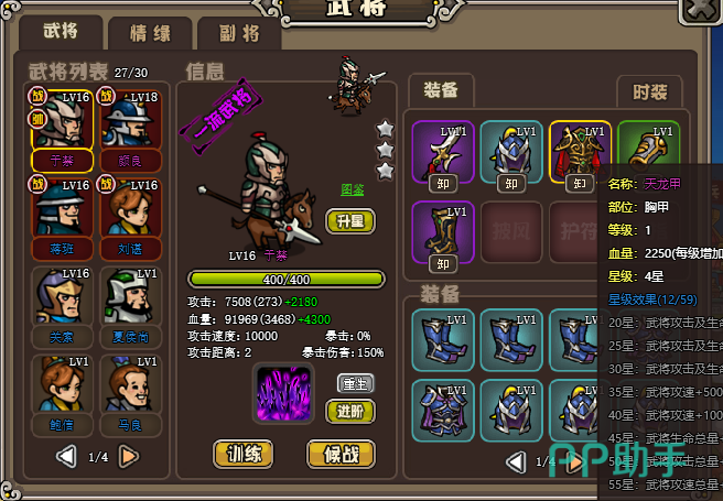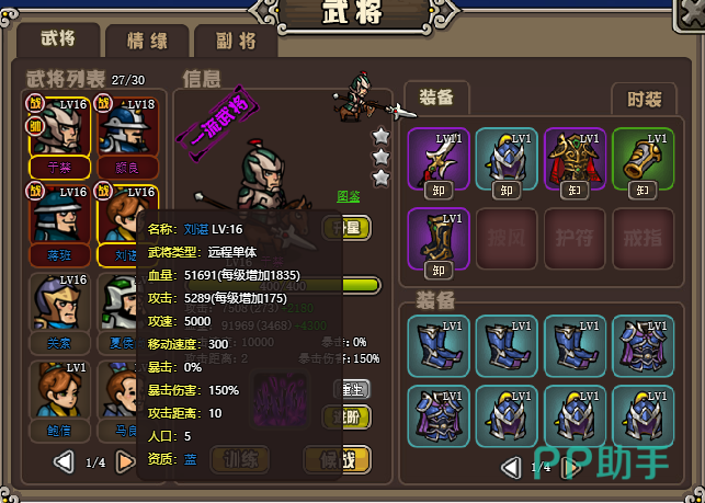 在将领的调配上,不管怎样进行衡量和挑选,首要第一点便是质量至上,游戏里将领的质量十分要害,哪怕只相差一个质量在后期的战役力距离也是天差地别的,武将在游戏里的分类由弱到强分别是三流、二流、一流、神和尊,武将调配方面优先挑选一流及以上质量的武将,然后再看武将的详细类型。