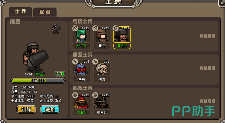 除了出战英雄的等级以外,士兵等级也是第一章满星通关的关键,第一章从第二十关开始,敌人的士兵种类会增多,而且士兵的强度也会提升,而前期士兵之间强度的差异也是影响通关的,所以大家还要在士兵界面里给自己的士兵进行培养,用铜币给士兵升级,这样才有更强的能力与张角的军队抗衡。